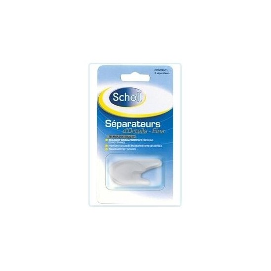 Gracias a la tecnología Gelactiv, los separadores de dedos finos de Scholl Pharma alivian el dolor causado por la fricción de los dedos superpuestos.