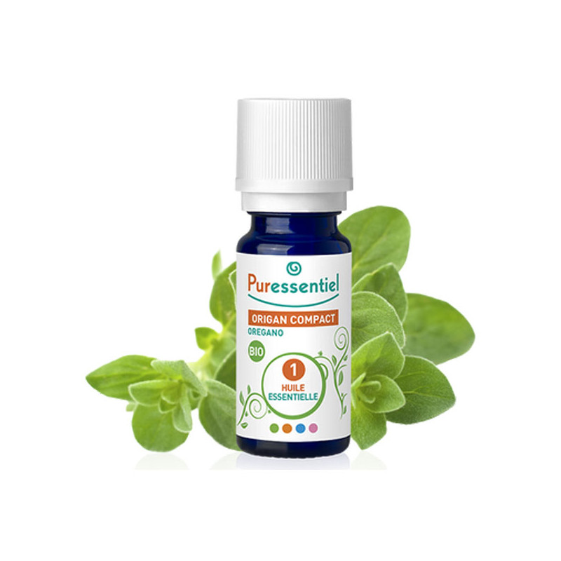 Tome un máximo de 2 gotas de aceite esencial de orégano compacto 3 veces al día en un comprimido neutro Puressentiel (o 1 cucharadita de miel, aceite de oliva o 1/4 de azúcar).