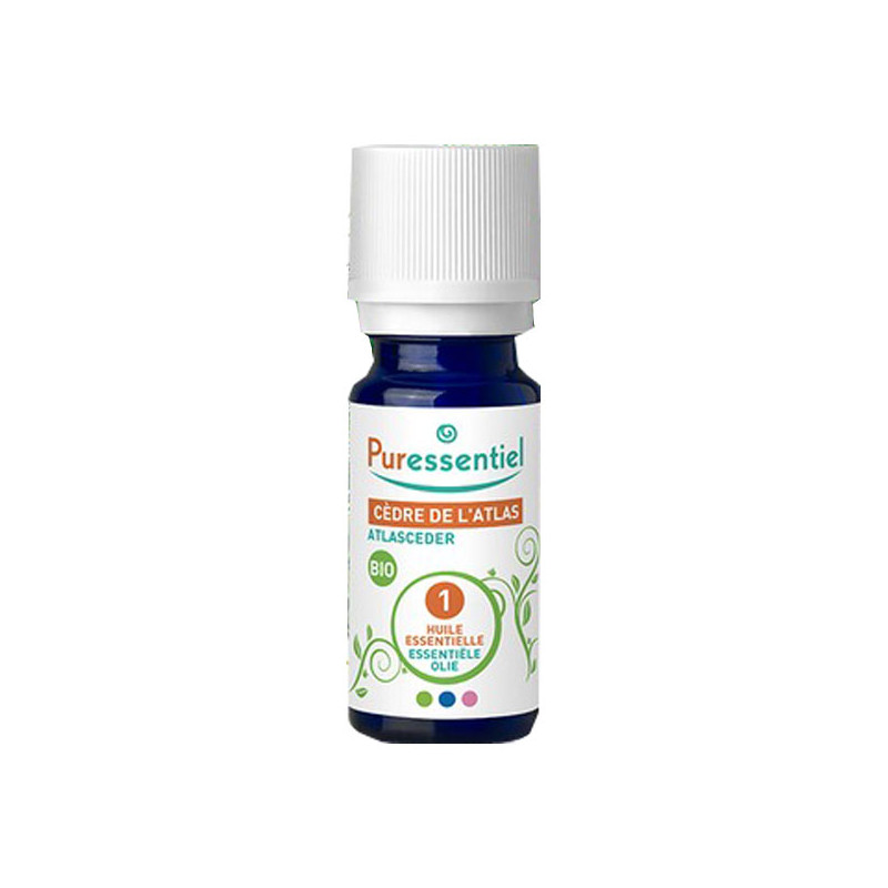 El aceite esencial de Cedro del Atlas Puressentiel bio se reconoce por su aroma particularmente amaderado.