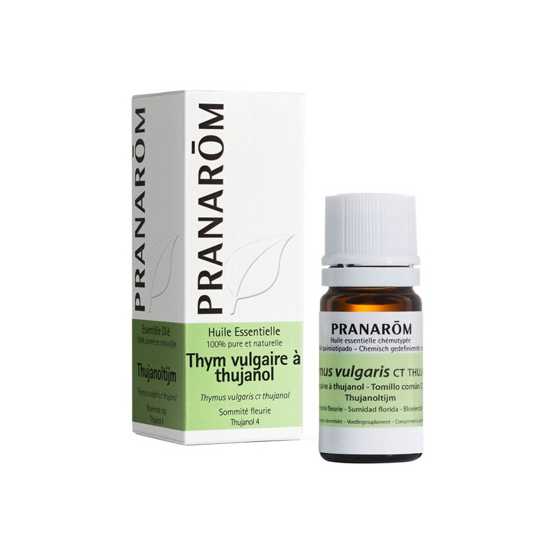 El tomillo común con tuyanol es una planta leñosa pequeña y tupida que puede alcanzar los 40 cm de altura. Tiene hojas pequeñas y curvadas con márgenes verde oscuro, cubiertas de pelos y tricomas. El polimorfismo químico de thymus vulgaris fue iniciado por granger et al. en 1963. Entre 1971 y 1986, Passet, Granger y Vernet et al. identificaron seis quimiotipos del tomillo: geraniol, α-terpineol, thuyanol, linalool, carvacrol y timol.