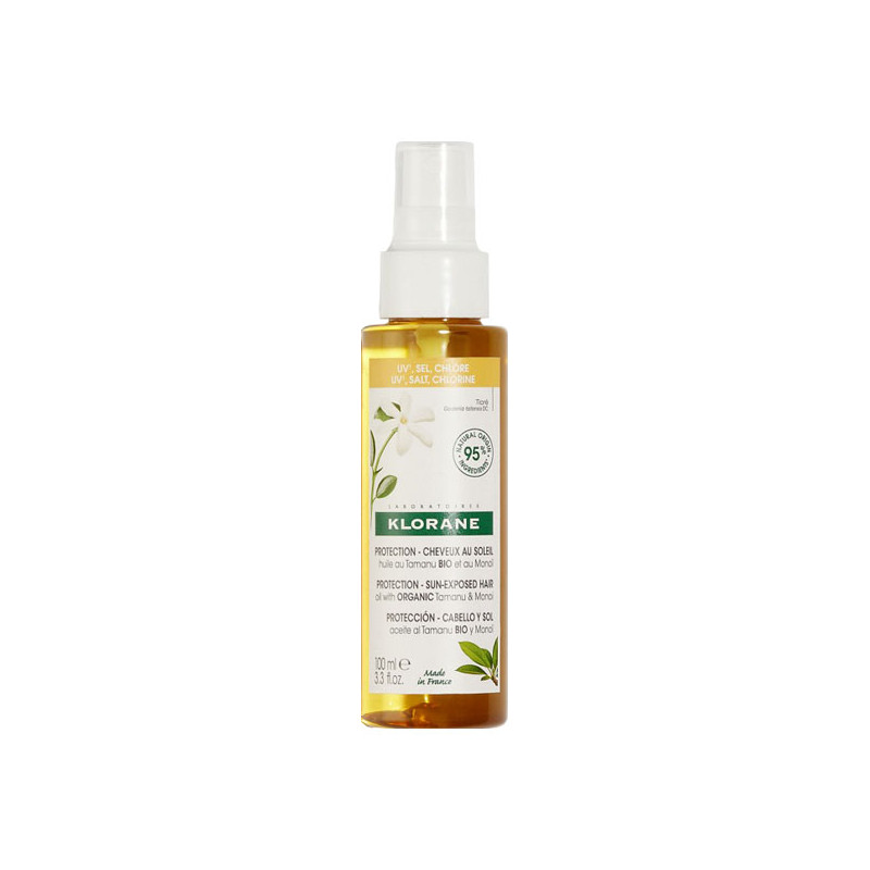 El Aceite Protector combina Tamanu BIO y Monoï de Tahití para cuidar el cabello antes, durante y después de la exposición al sol.