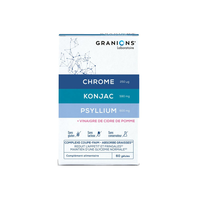Laboratoire des Granions ha desarrollado cuidadosamente una fórmula única a base de principios activos esenciales para reducir el apetito y los antojos, absorber las grasas y mantener niveles normales de azúcar en sangre: