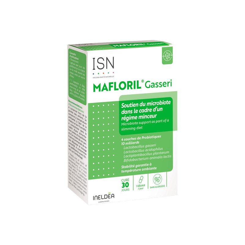 Lactis y Lactobacillusplantarum, MAFLORIL Gasseri proporciona un auténtico apoyo nutricional en el marco de una dieta de adelgazamiento.