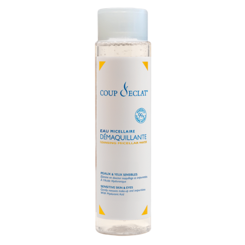 El Agua Limpiadora Micelar suave y sin aclarado de COUP D'ECLAT elimina todo tipo de maquillaje*, partículas de polución e impurezas sin resecar la piel.