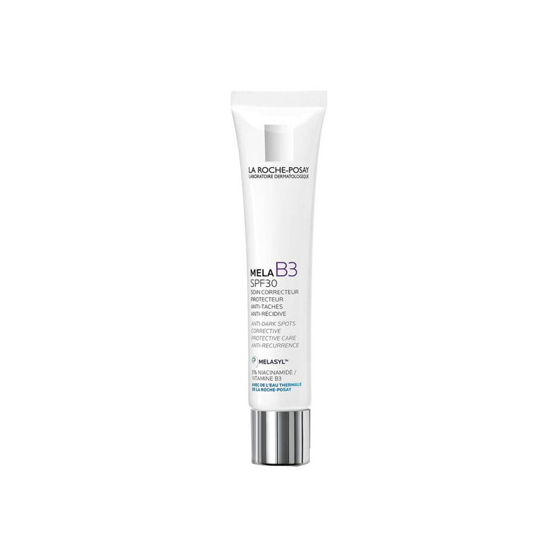 De la pérdida de luminosidad a las manchas persistentes : MELA B3 SPF 30 es el nuevo tratamiento corrector y protector de la piel que actúa sobre la hiperpigmentación, gracias al Melasyl multipatentado y al 5% de Niacinamida concentrada para corregir las manchas oscuras persistentes.