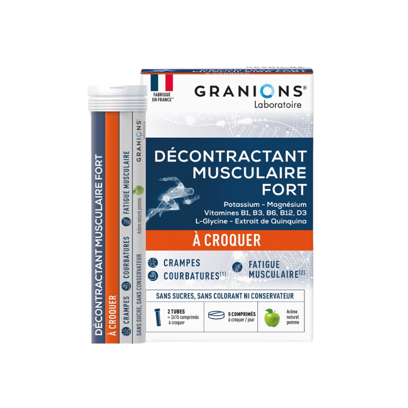 Laboratoire des Granions ha desarrollado Strong Muscle Relaxant Chewable, un complemento alimenticio en comprimidos masticables, fáciles de transportar y sin azúcar, específicamente formulado para favorecer la función muscular y reducir la sensación de fatiga y dolor.