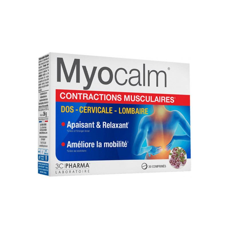 3C Pharma Myocalm Contracciones Musculares 30 Comprimidos es un complemento alimenticio indicado en caso de contracturas musculares en la espalda, región lumbar, cervical, etc. La fórmula de este complemento alimenticio combina 10 ingredientes rigurosamente seleccionados: - el aceite esencial de mejorana ayuda a transmitir los impulsos nerviosos y las contracciones musculares. - la naranja amarga calma y relaja. - la escutelaria ayuda al buen funcionamiento de los músculos esqueléticos durante la actividad física normal, el ejercicio o el deporte, y mejora la movilidad.