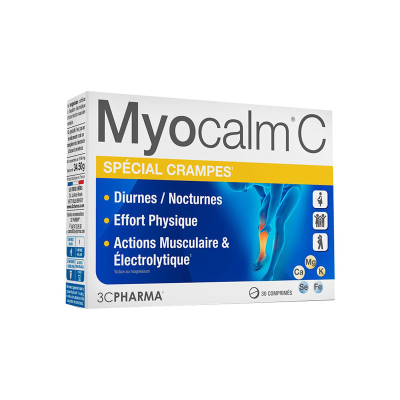 MYOCALM Especial Calambres es un complejo de minerales seleccionados para actuar rápidamente sobre el equilibrio electrolítico(1) y permitir el funcionamiento normal de los sistemas nervioso y muscular gracias al magnesio.
