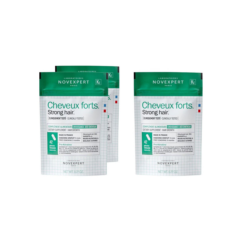 Un complejo exclusivo a base de extractos vegetales titulados, vitaminas y oligoelementos que actúan desde el interior para reducir significativamente la caída del cabello, estimular su crecimiento y mejorar la salud capilar en general.
