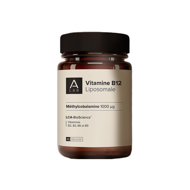 LCALa fórmula liposomal de Vitamina B12 de A-Lab ha sido diseñada para una asimilación óptima gracias a la combinación de una matriz liposomal y el complejo -BioScience, desarrollado a medida con vitaminas B2, B3, B6 y B9.
