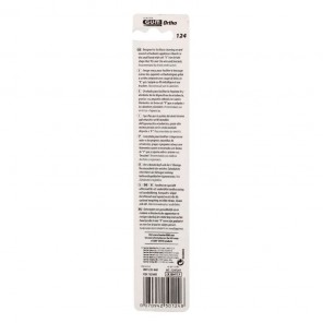 Gum Ortho Cepillo de Dientes Suave tiene un cabezal compacto con cerdas cortadas en V que se ajustan alrededor del alambre y los brackets de los aparatos de ortodoncia.