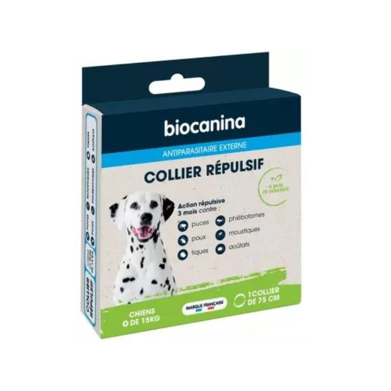 Collar repelente de insectos a base de geraniol para perros (de más de 15 kg).