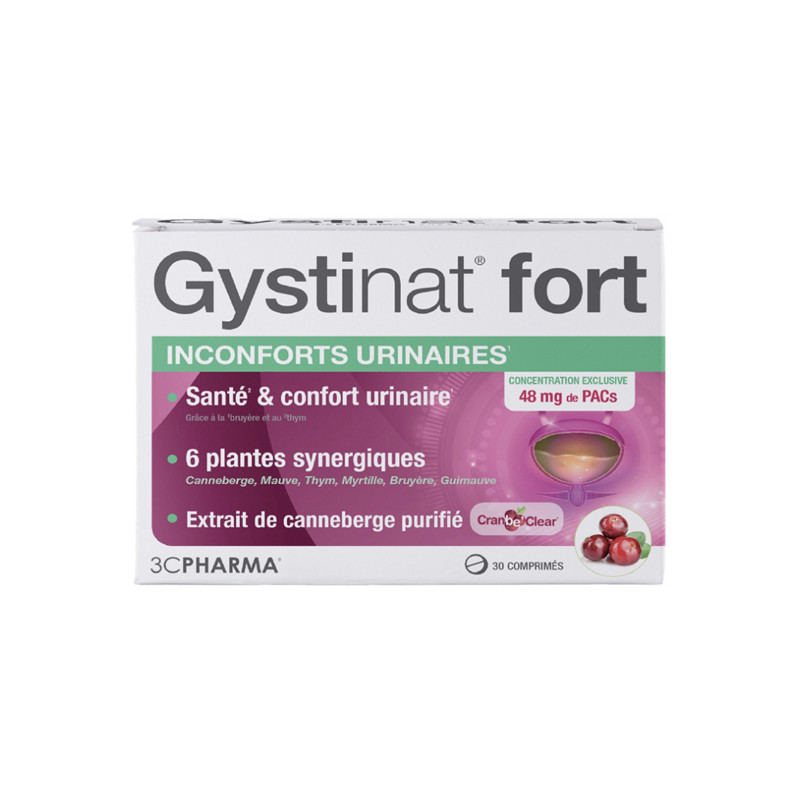 Gystinat Fort está formulado a base de extractos vegetales, entre ellos 1 activo Cranbeclear, que actúan en sinergia para favorecer la eliminación renal1 y urinaria1 y mantener el confort urinario1 de forma eficaz y duradera.