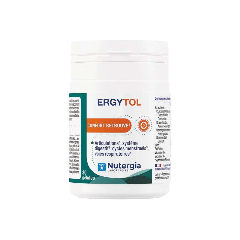 ERGYTOL es un complemento alimenticio que contiene una sinergia de extractos vegetales, vitaminas y minerales: