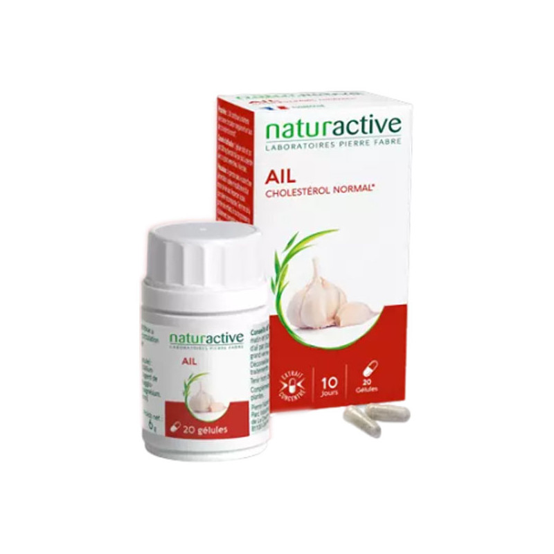 Ail (150 mg d'extrait d'Allium sativum L.), Gélatine, Agent de charge : cellulose, Antiagglomérants : stéarate de magnésium, dioxyde de silicium [Nano].