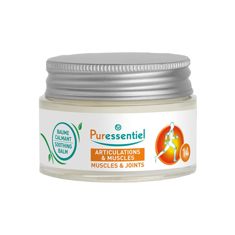 El Bálsamo Calmante Articular y Muscular Puressentiel contiene 14 aceites esenciales con propiedades calmantes, alcanfor y mentol de origen natural.
