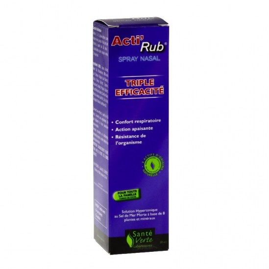 Gracias a la amplia gama de plantas y minerales utilizados (menta, eucalipto, sal del Mar Muerto, etc.), el spray nasal Acti'Rub ejerce una acción más potente sobre el conjunto de las vías respiratorias afectadas por los resfriados, proporcionando un mayor confort y minimizando la irritación nasal.