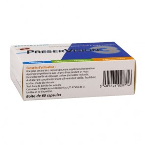 Preservision 3 es un complemento alimenticio ocular. Rico en vitaminas y minerales antioxidantes, pigmentos maculares (luteína y zeaxantina) y ácidos grasos.
