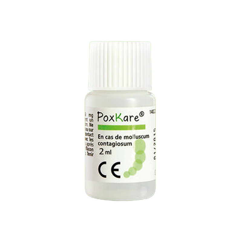 PoxKare es una solución sencilla y eficaz de hidróxido potásico al 5% que elimina rápidamente el molusco contagioso sin recidivas ni hemorragias.