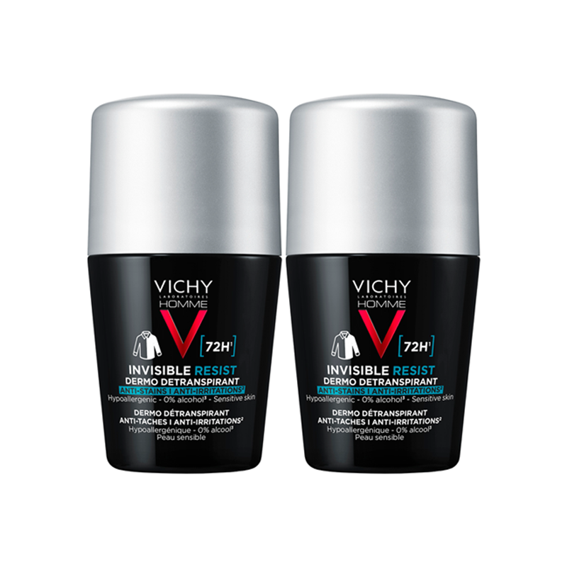 El dermo-destranspirante Vichy Homme Invisible Resist 72h, especialmente formulado para el hombre, combina eficacia gracias a su acción antihumedad y antiolor con una tolerancia óptima gracias a su fórmula hipoalergénica sin alcohol testada en pieles sensibles por su acción antiirritación.