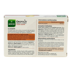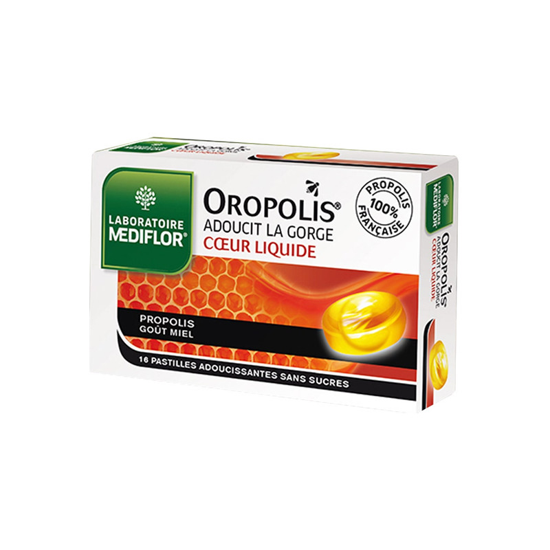 MEDIFLORDesarrolladas por el Laboratorio ®, las pastillas suavizantes de garganta OROPOLIS® Coeur Liquide contienen un corazón líquido concentrado en extracto de própolis, rodeado por una envoltura calmante. Una vez liberado, el corazón recubre la garganta para una prolongada sensación de confort.