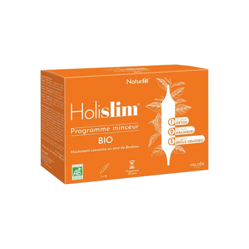 Holislim es un programa adelgazante completo, compuesto al 100% de extractos de plantas ecológicas altamente concentrados, en 3 etapas sucesivas de 10 días cada una, destinado a desintoxicar, drenar y quemar las grasas.