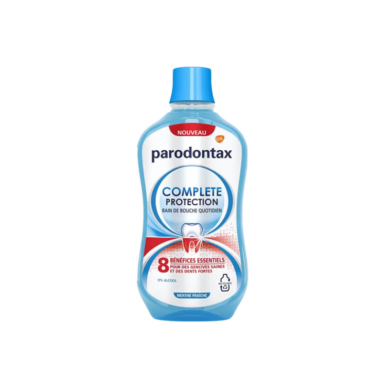 El enjuague bucal diario Parodontax Complete Protection te ofrece una protección integral para unas encías sanas y unos dientes fuertes si lo utilizas junto con una pasta dentífrica con flúor.