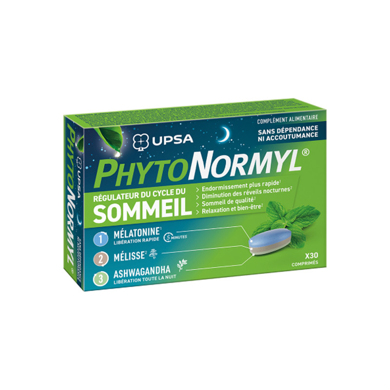 PHYTONORMYL es un complemento alimenticio a base de ingredientes cuidadosamente seleccionados que actúan sobre el ciclo del sueño para ayudarle a conciliar el sueño más rápidamente gracias a la melatonina y favorecer un sueño de calidad gracias a la melisa.