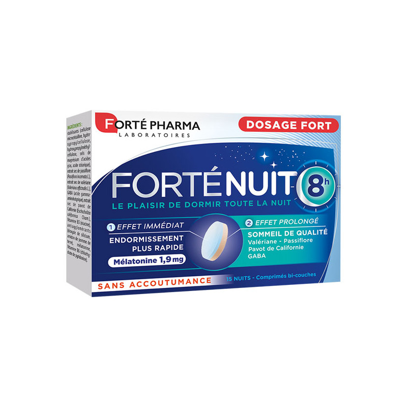 ¿Dificultades para conciliar el sueño, malas noches, falta de sueño? Forté nuit 8h es una solución no adictiva que le ayudará a conciliar el sueño más rápidamente y a dormir bien.
