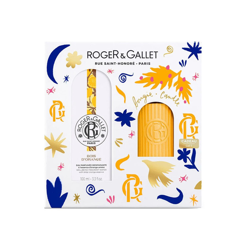 Roger & Gallet Bois d'Orange Agua Perfumada Benéfica Estuche de Regalo 100 ml + Vela Perfumada 75 g de regalo ofrece una fragancia encantadora y un ambiente cálido.