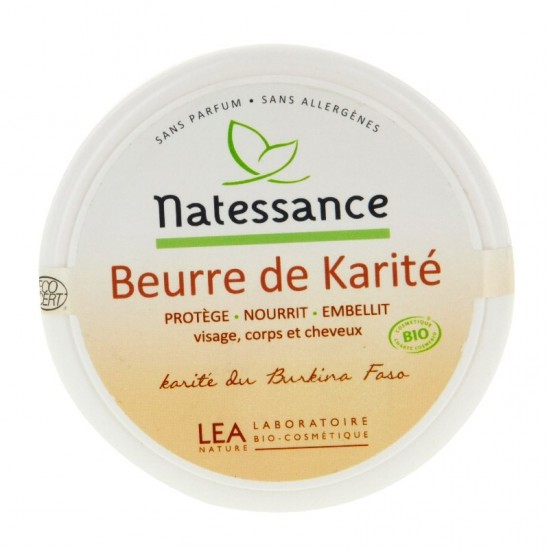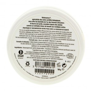 La manteca de karité tiene propiedades excepcionales, y es rica en vitaminas A y E y ácidos grasos esenciales. Forma una película protectora natural en la superficie de la piel, reduciendo los efectos de las agresiones externas (variaciones de temperatura, viento, etc.).