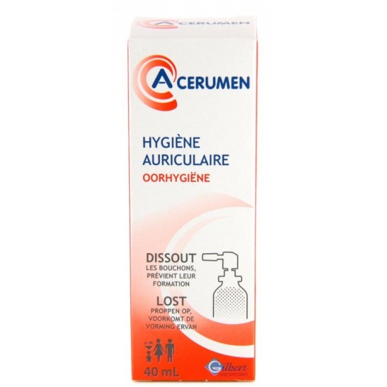A-Cerumen Solución para la Higiene del Oído de los Laboratorios Gilbert disuelve los tapones de cerumen y evita que se formen.