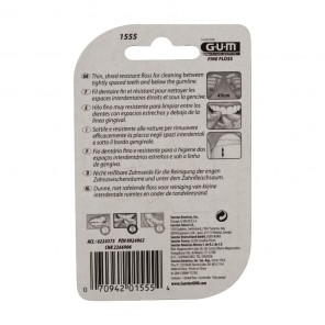 GUM Fine Floss es un hilo dental fino y resistente para la limpieza de espacios interdentales estrechos y por debajo de la línea de las encías.
