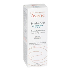 La Crema Hidratante Hydrance UV RICHE les aporta un complemento de Agua Termal de Avène, para ofrecerles una hidratación 24 horas y una alta protección SPF 30.