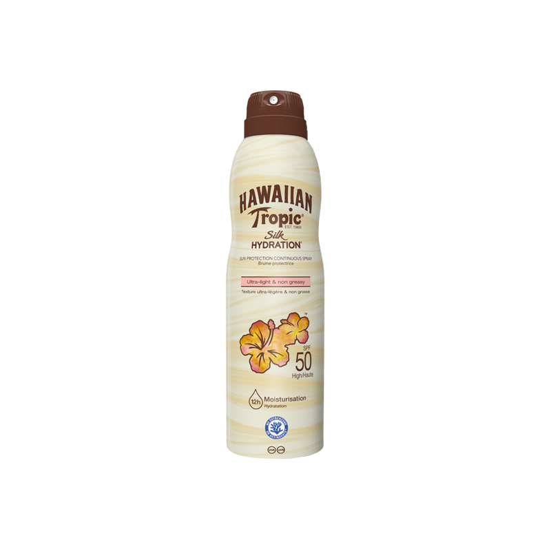 Escápate a Hawái, estés donde estés, y siente el sol en tu piel (no el protector solar) con las lociones ultraligeras en spray Silk Hydration™.