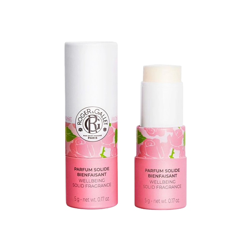 Descubra su Eau Parfumée Bienfaisante Rose en un nuevo formato sólido para aplicar en el hueco del cuello, el escote y las muñecas.