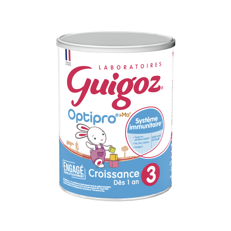 GUIGOZInspirándose en 60 años de investigación sobre la leche materna, los Laboratorios Guigoz han desarrollado® Optipro Croissance, la primera fórmula con 3,3 veces menos proteínas que la leche de vaca y una combinación de vitaminas y minerales para responder a las necesidades de los bebés de 1 a 3 años en el marco de una alimentación diversificada