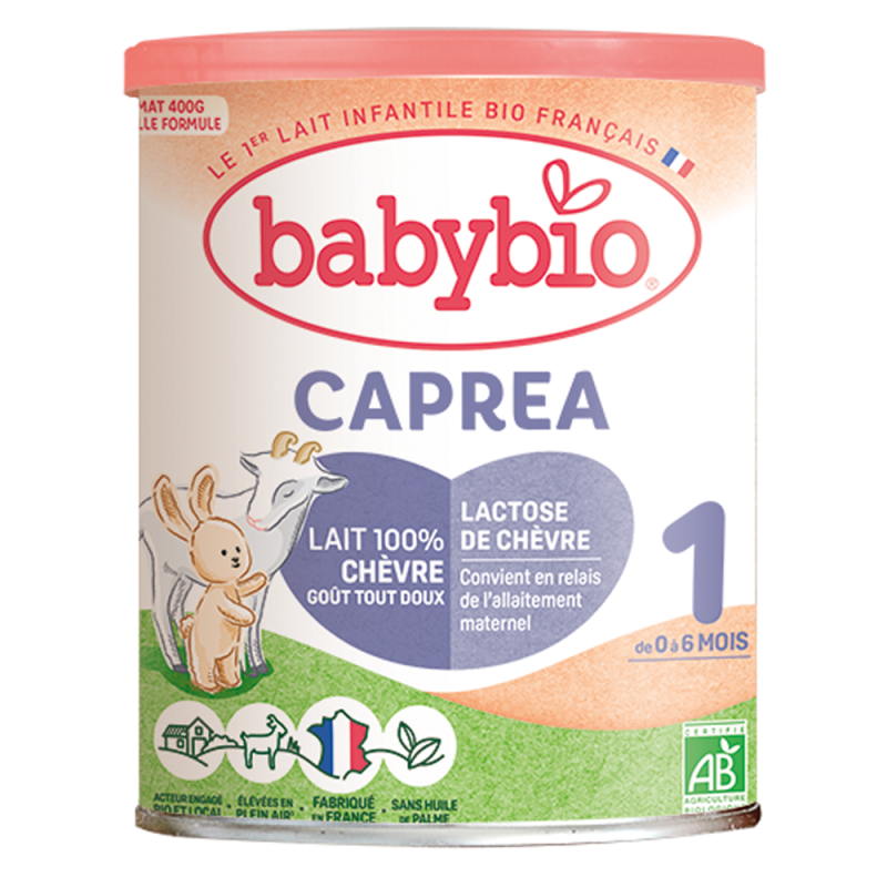 Leche en polvo ecológica para lactantes elaborada en Francia con leche de cabra ecológica procedente de Francia. Adecuada para la alimentación especial de lactantes desde el nacimiento, en cumplimiento de la normativa.