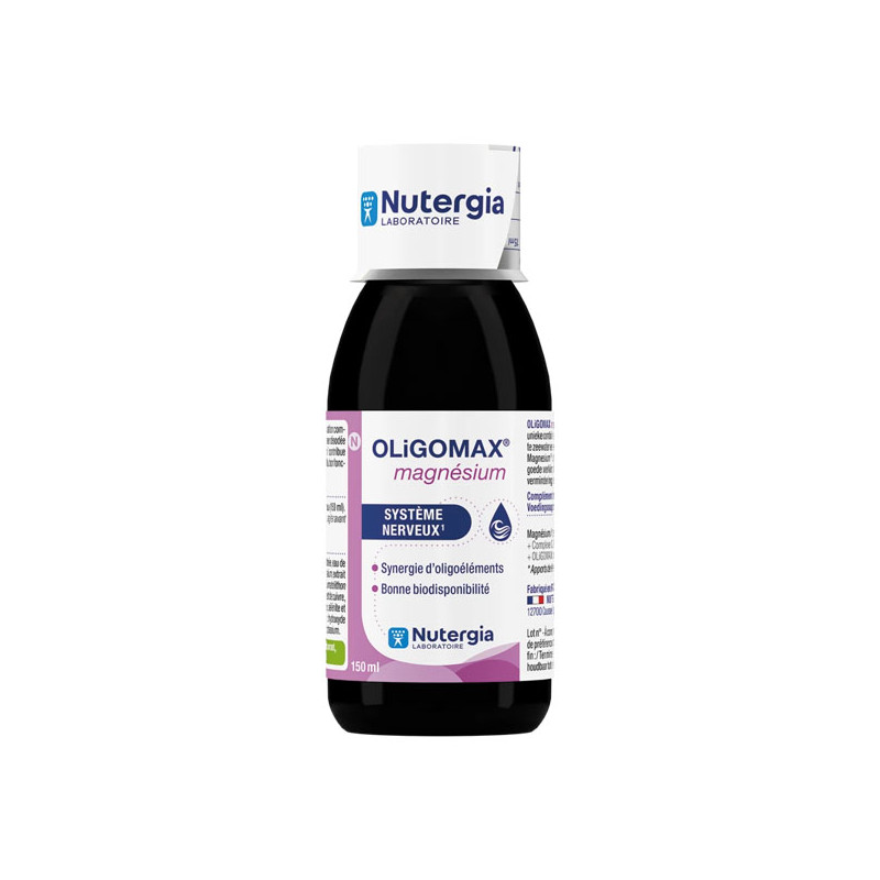 OLiGOMAX Magnesio es una combinación de un extracto patentado francés de alga lithothamnion y un concentrado de agua de mar desodorizada, que aporta todos los oligoelementos y está enriquecido con magnesio. El magnesio contribuye a reducir la fatiga y a mantener el buen funcionamiento del sistema nervioso.