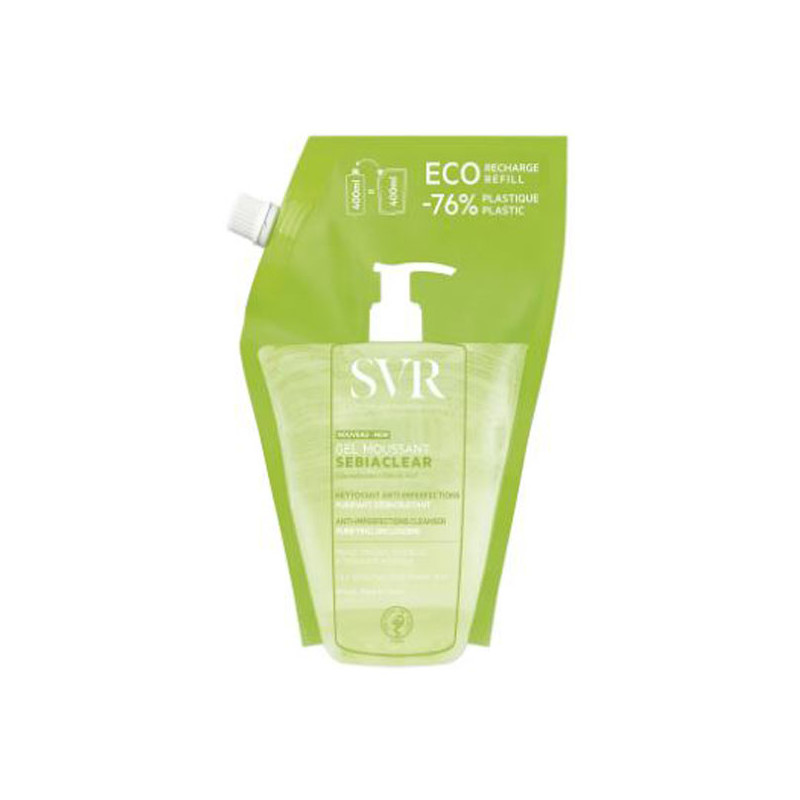 - Vierta el gel espumoso del eco-recarga en la botella de Gel Espumoso Sebiaclear 400ml o en su botella favorita.