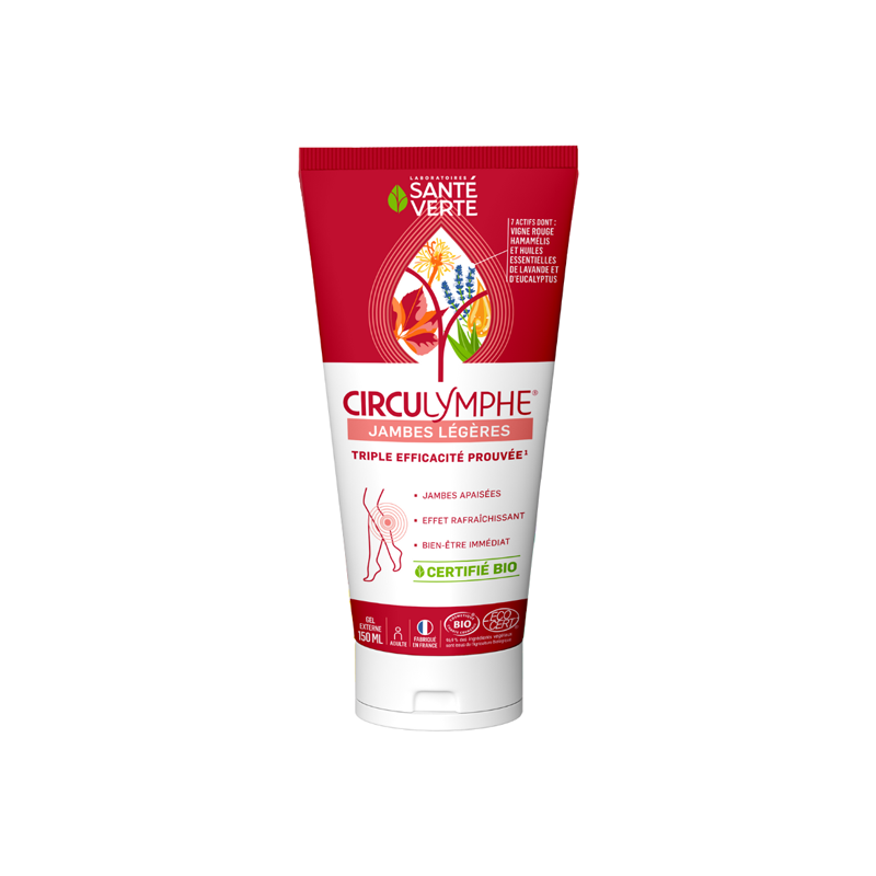 El Gel Externo BIO Piernas Ligeras CIRCULYMPHE® actúa inmediatamente sobre las piernas cansadas para un bienestar y frescor inmediatos, gracias a la acción de su complejo de activos y al efecto estimulante del masaje sobre la circulación.