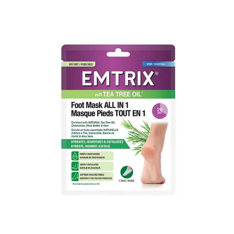 - La mascarilla para pies "Todo en 1" de Emtrix está especialmente diseñada para hidratar, nutrir y exfoliar los pies secos y los talones agrietados en sólo 20 minutos.