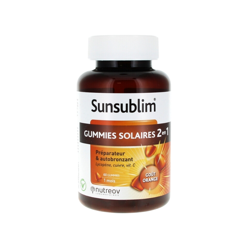 Nutreov Sunsublim Gummies Solaires 2en1 60 Gummies es un complemento alimenticio que combina :