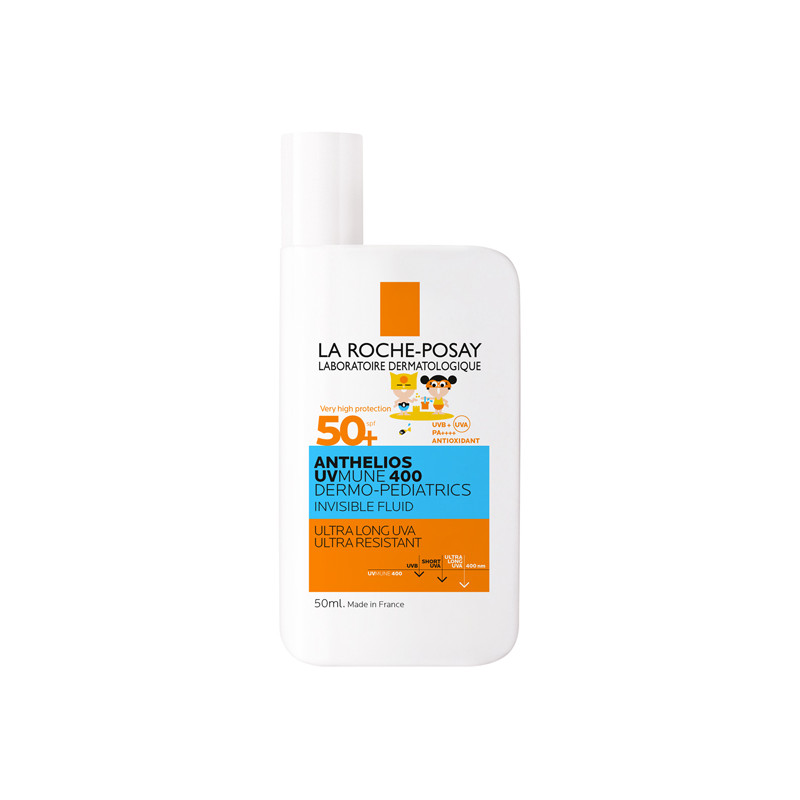 ANTHELIOS UV MUNE 400 Fluido solar dermo-pediátrico con protección muy alta de amplio espectro frente a los rayos UVA/UVB y UVA ultra-largos.