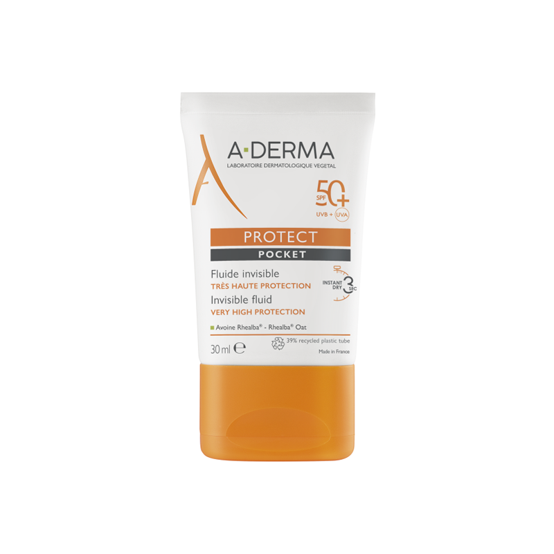 El Fluido Invisible SPF50+ PROTECT POCKET protege la piel del sol y de la contaminación y la refuerza** gracias, en particular, al Barriestolide® del Aceite Vegetal de Avena Rhealba®.