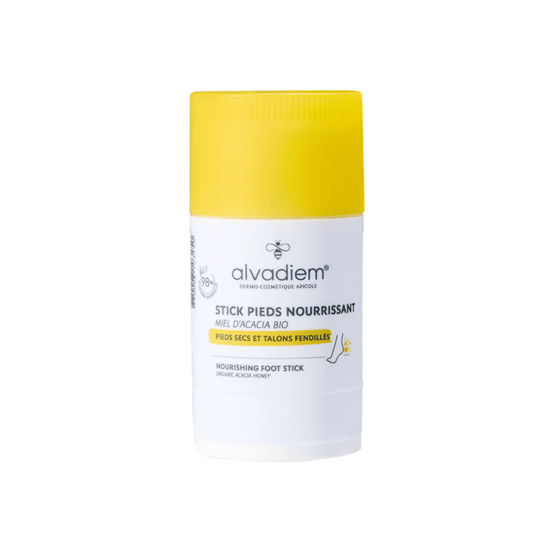 El primer tratamiento sólido para hidratar los pies secos Formulado sin agua y rico en activos altamente nutritivos como las mantecas de karité y cacao bio, el Stick Nutritivo para Pies suaviza y alisa los pies. En el corazón de este tratamiento se encuentra la miel de acacia bio, que proporciona una hidratación inmediata y duradera para unos pies suaves y lisos.