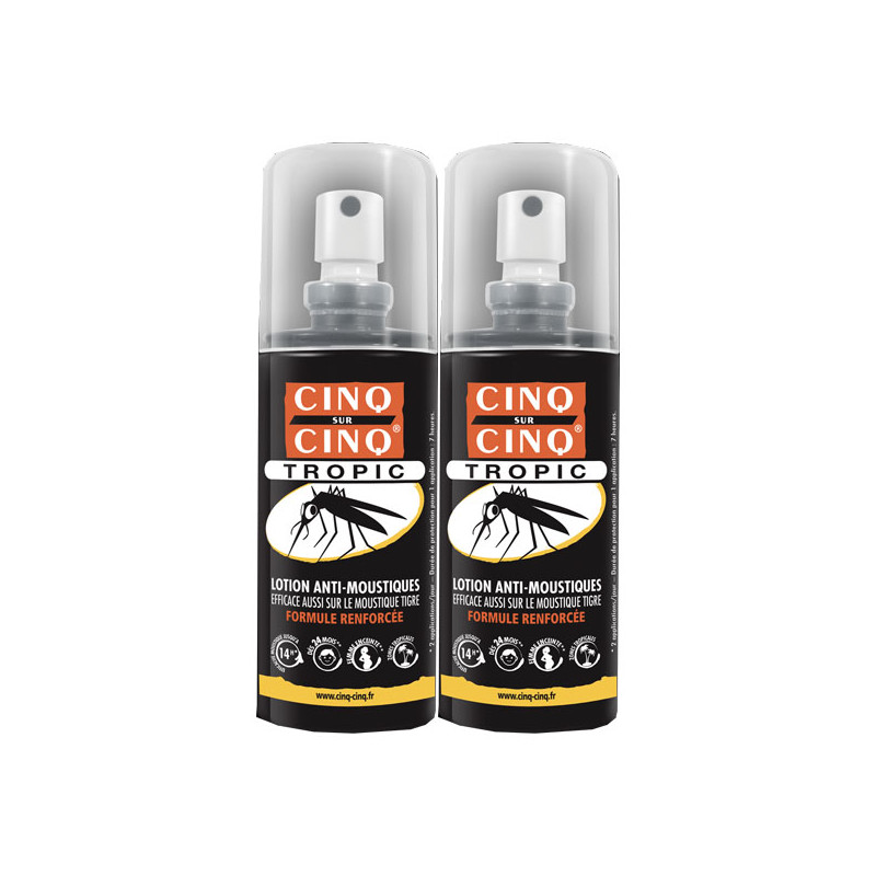 Cinq sur Cinq® Tropic Spray es una loción antimosquitos reforzada, ideal para sus vacaciones en zonas de alto riesgo.