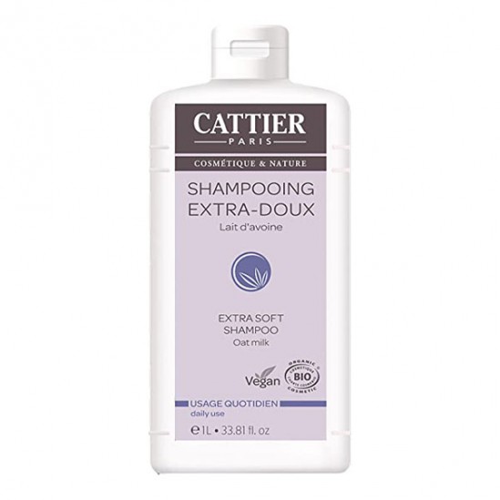 El champú extrasuave con leche de avena y aceites esenciales certificado ecológico Cattier aporta suavidad y brillo a todo tipo de cabellos. Fortalece el cabello y facilita el desenredado. Su fórmula ultrasuave con pH equilibrado permite su uso diario.